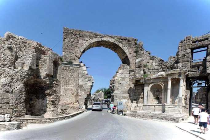 Ворота знаходяться в північній частині міста, через них можна потрапити до історичної частини Сіде. Від арки починається головна вулиця стародавньої колонії. Споруда звели в I столітті на честь римського імператора Веспасіана. Це була грандіозна конструкція, що в довжину досягає 6 метрів. Згодом ворота сильно зруйнувалися, але навіть зараз через те, що від них залишилося, можна оцінити монументальність римської архітектури.