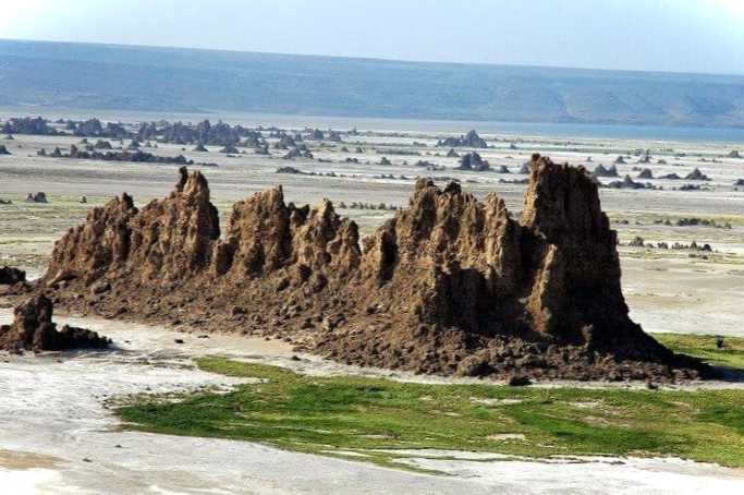 Солоне водоймище, розташоване серед зовсім неземних ландшафтів. У цих місцях можна зустріти вапнякові стовпи та вежі, утворення найнезвичайніших форм та квітів. З-під землі постійно вириваються клуби пари, нагадуючи про потужну вулканічну активність навколишньої місцевості.