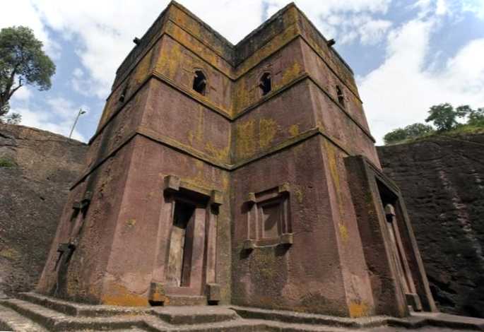 Була зведена в XII в. з волі короля, який вирішив заснувати у країні новий Єрусалим. Храм присвячений покровителю та захиснику Ефіопії Святому Георгію. Будівля була вирубана зі скелі у вигляді грецького хреста, що йде в землю. Церква ніби занурена в кам'яну криницю глибиною 25 метрів.