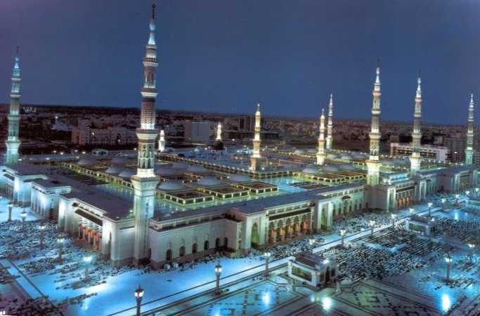 Друга святиня Ісламу у Медині. Була зведена Мухаммедом та його сподвижниками. Тут під зеленим куполом знаходиться могила пророка. У розмірах поступається мечеті Аль-Харам, натомість має 10 мінаретів заввишки понад 100 метрів. Храм вміщується до півмільйона віруючих, його архітектура прийнята як канон для спорудження мечетей по всьому світу.