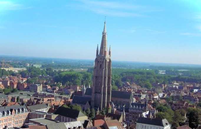 Кафедральний собор Брюгге, увінчаний 122-метровою дзвіницею. Ця витончена вежа XV століття є впізнаваним символом міста. Усередині храму знаходиться один із найбільших творів мистецтва епохи ренесансу - статуя Богоматері з немовлям роботи Мікеланджело. У церкві останки останнього бургундського герцога Карла Смілого та його дочки Марії.