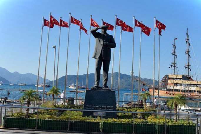 Монумент на честь батька нації Ататюрка – обов'язкова пам'ятка чи не кожного турецького міста. Мармариський пам'ятник встановлений на набережній в оточенні турецьких прапорів та зеленого газону, на якому також присутній викладений із квітів національний прапор. Ататюрк зображений на повний зріст у русі. Рукою лідер робить чи вітальний помах, чи прикриває очі від яскравого сонця.