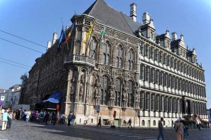 Будівля міської ради, яка є змішанням архітектурних стилів. Фасад чітко ділиться на дві частини, що належать різним епохам. Тут можна знайти елементи готики, фламандського Ренесансу, псевдо ампіру, бароко. Ратуша була зведена у першій половині XVI століття на місці колишнього будинку однієї з торгових гільдій. У XIX столітті було проведено кілька реконструкцій, у тому числі – повністю оновлено інтер'єр.