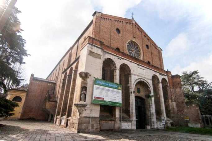 Церква розташована неподалік капели Скровеньї. Будівлю було зведено наприкінці XIII століття. Над внутрішнім розписом працювали майстри А. так Форлі, А. Мантенья і Гварьєнто. Храм і монастир були побудовані ченцями-августинцями, які проповідували самітницький спосіб життя. Обитель проіснувала до XIX століття, доки Наполеон Бонапарт не влаштував тут свої казарми.