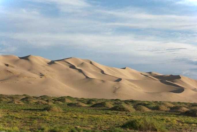 Знаходиться на півночі країни, найбільша пустеля в Азії. Практично не заселена, на території зустрічаються племена, що кочують. Рослинність убога, але є унікальні представники фауни. Тут знаходиться найбільший цвинтар динозаврів.