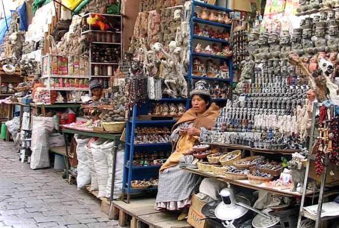 Це ринок у Ла-Пасі, на якому продавцями виступають шамани та відьми. Вони продають все: зілля для привороту, амулети, цілющі трави, обереги та магічні атрибути. Але навіть тут можна торгуватися. Також тут можна купити жабу для залучення достатку або предмети спілкування з предками. А якщо і це не підходить, тут є безліч прикрас зі срібла та вовни.