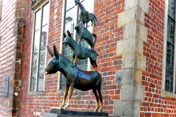 Казку братів Грімм "Бременські музиканти", мабуть, знають усі. У 1951 році прямо навпроти ратуші з'явилася скульптура, присвячена героям цієї історії: ослу, собаці, коту та півня. Звірі стоять одна на одній і утворюють своїми тілами піраміду. Ідея увічнити твір Грімм спала на думку скульптору Г. Марксу. Ще один подібний пам'ятник стоїть на Беттхерштрассі та в Ризі - місті-побратимі Бремена.