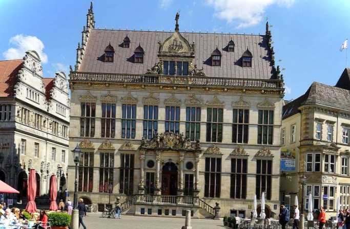 Унікальна пам'ятка архітектури та один із найяскравіших представників стилю "везерський ренесанс", розташований на Ринковій площі. Сьогодні, як і раніше, у будівлі засідає міська влада. Ратушу звели на початку XV століття у готичному стилі, однак у 1600 році її перебудували у стилі епохи Відродження, прикрасивши фасад та стіни численними рельєфами та скульптурами.
