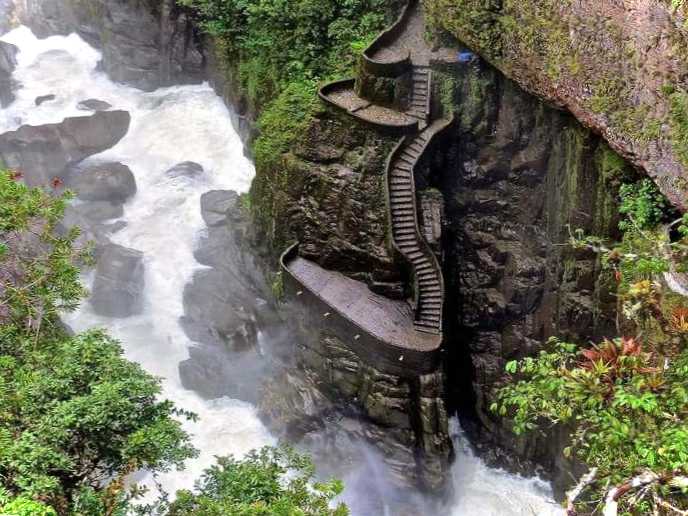 Одне з найкрасивіших і вражаючих місць Еквадору - водоспад Пайлон дель Дьябло. Щоб потрапити до Котла Диявола, як ще називають це місце, туристам доводиться долати досить вузький тунель. Але складності цього шляху з лишком компенсуються чудовим виглядом величезної гуркітливої стіни з водяних бризок, яка знаходиться буквально на відстані витягнутої руки від оглядового майданчика водоспаду.