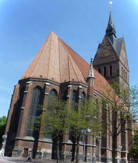Храм розташовується на головній площі Ганновера, його повна назва – церква Святого Георгія та Якоба. Разом із будівлею Старої ратуші, вона складає гармонійний та мальовничий архітектурний ансамбль Ринкової площі. Храм був побудований у XIV столітті, основний архітектурний стиль – німецька готика. Поруч із церквою встановлено пам'ятник основоположнику та невгамовному натхненнику церковної Реформації М. Лютеру.