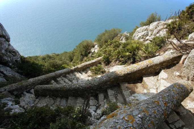 Маршрут рекомендується лише для підготовлених туристів. Створено британськими військовими у XVIII столітті у масштабах системи зв'язку. За допомогою ступенів було налагоджено доступ до оборонних постів та вогневих точок на скелі. Стежка бере початок у Геркулесових стовпів, проходить через природний заповідник, вздовж східної частини скелі, і закінчується на самій її вершині, біля батарей О'Хари та Лорда Айрі. Протяжність – 1800 метрів. У 2007 році було проведено реконструкцію ступенів.