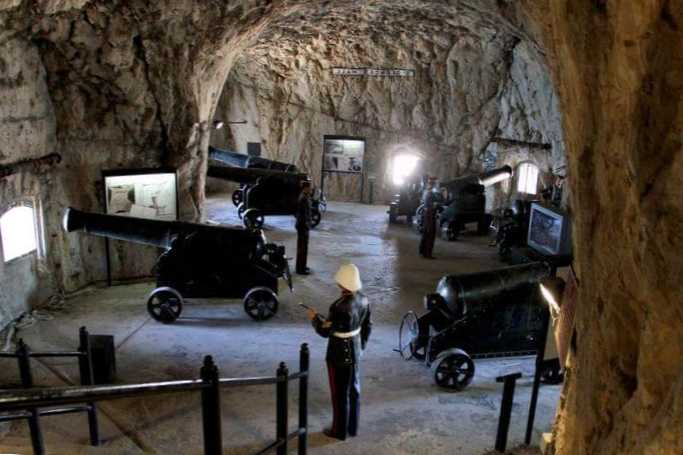 Унікальна оборонна система Гібралтару. Лабіринт тунелів був побудований за 6 тижнів британцями для захисту від об'єднаних сил Іспанії та Франції у 1779-1783 рр. Вирубані вони вручну на північному боці скелі. Багато в чому завдяки переміщеним сюди гарматам Англія змогла здобути перемогу. У роки Другої світової тунелі було значно розширено. Сьогодні тут відкрито виставкові зали, де демонструються гармати, манекени солдатів та інші експонати військової історії.