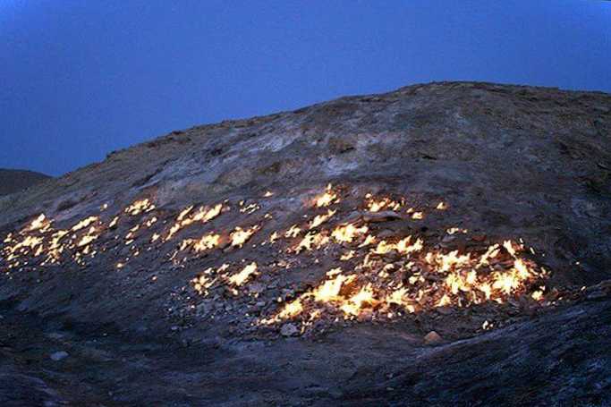 Гора, що горить в провінції Хузестан. Це унікальне явище з точки зору геології - завдяки природному газу та сірці, що піднімається з надр, на поверхні горить "вічний" вогонь. Це видовище приваблює безліч туристів, які збираються вечорами та милуються дивовижним природним феноменом.
