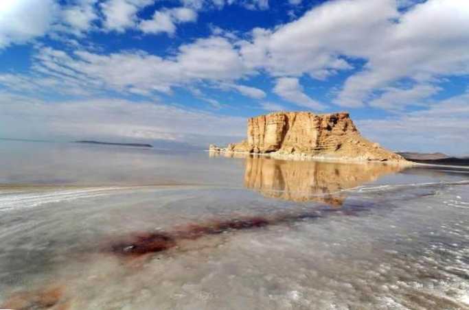 Колись ця водойма була однією з найбільших солоних озер у світі, але згодом вона стала висихати. За останні кілька десятків років кількість води зменшилась на 90%, а площа скоротилася до 2000 км². Солончакові береги озера дуже мальовничі, у південній частині знаходиться безліч дрібних островів, на деяких з них ростуть гаї фісташки.
