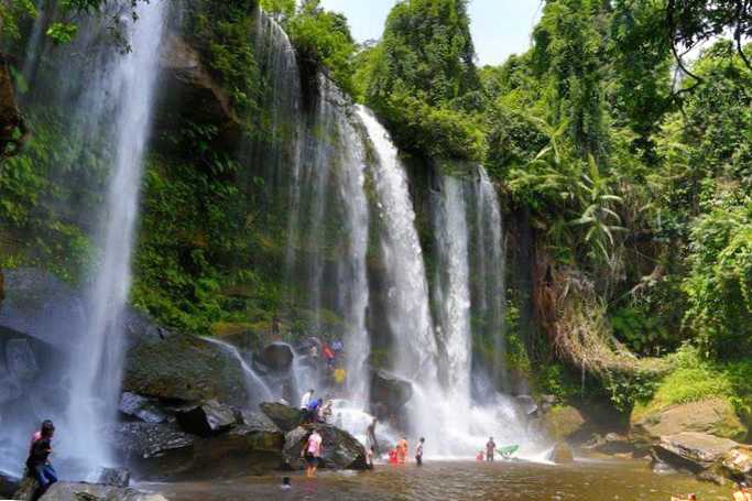 Національний парк Пном Кулен славиться тропічними пейзажами та мальовничими водоспадами. Зазвичай усім показують два водоспади, проте місцеві жителі стверджують, що їх насправді три: перший зовсім невеликий, всього три метри заввишки, до другого 18-метрового можна дістатися гірською стежкою, що веде вниз, а третій 70-80-метровий таїться в непрохідних джунглях.