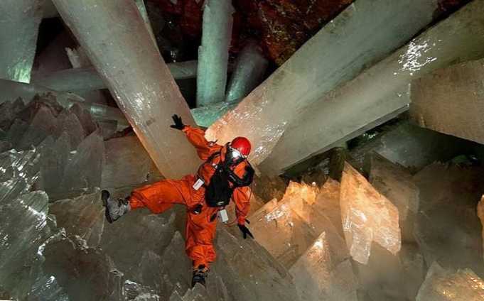 Величезні гіпсові кристали почали формуватися в печері, розташованій поряд із містом Чихуахуа, близько двадцяти шести мільйонів років тому. Промені, що ростуть при ста процентній вологості і температурі в п'ятдесят вісім градусів за Цельсієм, важать кілька десятків тонн і досягають у довжину одинадцяти метрів.