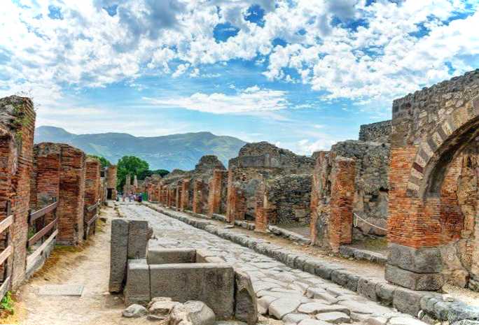 Давньоримське місто, засноване в VI столітті до н.е. італійським народом осків. У I столітті до н.е. Помпеї потрапили під владу Риму. У 79 році в результаті потужного виверження Везувію місто було повністю поховано під попелом, загинуло кілька тисяч жителів. Розкопки території почалися у XVIII столітті. В результаті Помпеї були буквально "викопані" з-під товстого шару золи. В наші дні на території відкрито історичний парк-музей.