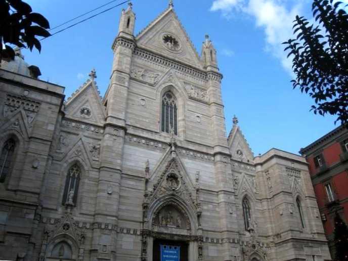 Храм, присвячений покровителю Неаполя. Януарію. Він був закладений за короля Карла I Анжуйського в XIII столітті. У соборній капелі збереглися унікальні розписи XIV ст. Найголовнішою реліквією собору є судина XVII століття з кров'ю Св. Януарія, яка перебуває у застиглому стані. Але тричі на рік у присутності великої кількості віруючих відбувається релігійне "диво", і кров знову стає рідкою.