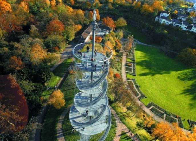 Футуристична конструкція розташовується у міському парку. Вона була побудована в 2000 році за проектом. Шлайха. У висоту вежа сягає 40 метрів. Вона являє собою дві спіралеподібні сходи, що вивчаються навколо паралельних один одному дисків-майданчиків. Ці диски нанизані на опорну вісь, увінчану флюгером. На конструкцію накинуто павутиноподібний залізний каркас.