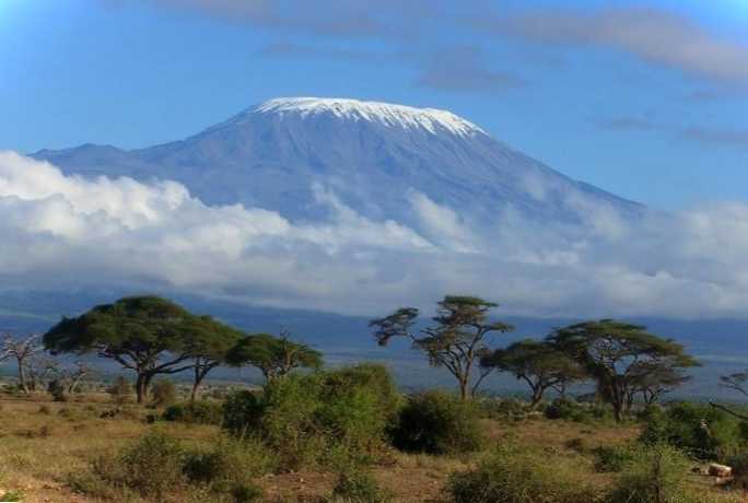 Найвища гора вулкан на Африканському континенті. Величний Кіліманджаро стоїть на плоскогір'ї Масаї, у висоту гора сягає 5895 метрів. У перекладі з місцевого прислівника суахілі назва означає "блискуча гора". Серед численних туристів популярні сходження на вершину, "підкорення Кіліманджаро" або просто піші організовані (або самостійні) походи мальовничими околицями.