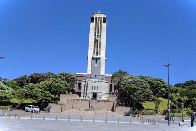 Являє собою високий обеліск із тривимірними скульптурами, вершину якого вінчає бронзовий вершник. Його фігура з піднятою рукою символізує готовність новозеландців захищати свою батьківщину. Монумент присвячений воїнам, які загинули під час двох світових воєн XX століття та у локальних військових конфліктах. Був встановлений у 1931 році, а наприкінці 40-х років доповнений фігурами левів та барельєфами на військову тематику. Щороку 25 квітня біля меморіалу відбуваються заходи до Дня пам'яті.