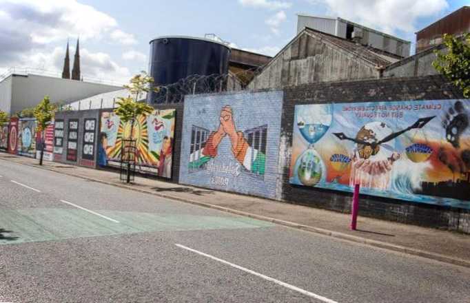 Історія протистояння англійців та ірландців почалася кілька століть тому. Не раз розбіжності виливались у локальні війни та конфлікти. У XX столітті на вулицях Белфасту, Деррі та деяких інших міст велися справжні війни, тому в 70-х рр. влада була змушена побудувати стіну, щоб відокремити ірландські квартали від шотландських та англійських. Стіна прикрашена численними графіті, що зображують сцени боротьби ірландців за незалежність.