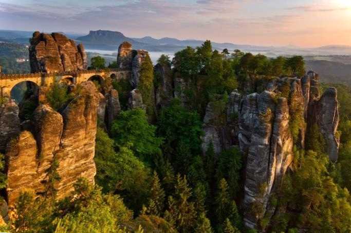 Міст, прокладений між прибережними скелями в першій половині XIX століття. Архітектура споруди нагадує стародавні римські акведуки та ранню романську споруду одночасно. Його оточують мальовничі краєвиди місцевості, відомої як національний парк "Саксонська Швейцарія". Міст височить на 195 метрів над Ельбою і з нього відкривається чудовий краєвид на річкову долину, гірські плато та прибережні скелі.
