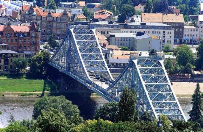 Офіційна назва споруди – Лошвицький міст. Конструкція довжиною 280 метрів з'єднує райони Лошвиць та Блазевиць. Міст був зведений наприкінці XIX століття за прогресивним та інноваційним для свого часу проектом інженера Б. Крюгера. Перш ніж міст запрацював, його піддали численним випробуванням на міцність. У наші дні "Блакитне диво" знаходиться у відмінному стані та активно експлуатується.