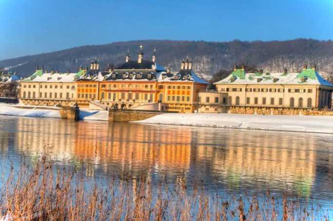 Літня резиденція правителів Саксонії на берегах Ельби. На початку XVIII століття за волею Августа Сильного Веттіна були зведені Водний та Нагірний палаци згідно проекту архітекторів З. Лонглюна та М. Пьоппельман, новий палац з’явився трохи пізніше. На території комплексу знаходиться Замковий музей, Музей прикладного мистецтва та чудовий ландшафтний парк в англійському стилі.