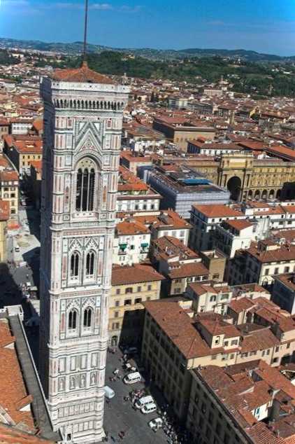 Дзвіниця є частиною архітектурного комплексу собору Санта-Марія-дель-Фьоре. Це видатний зразок італійського архітектурного мистецтва, створений за участю майстра Джотто ді Бондоне. Його ім'я увічнено у назві кампаніли. У висоту вежа досягає 84 метрів, на верхньому ярусі розташовується оглядовий майданчик, звідки туриста відкривається панорама Флоренції. На майданчик ведуть понад 400 ступенів.