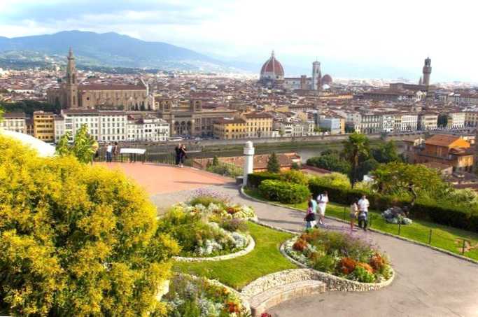 Флорентійська площа, звідки відкривається найкраща панорама на місто. Через це на ній завжди багатолюдно і галасливо. Площа була створена у ХІХ столітті під час масштабної реконструкції Флоренції. Назва була дана на честь неперевершеного творця Мікеланджело. У 1873 році на площі було встановлено копію скульптури "Давид" Мікеланджело та ще чотири копії творів цього знаменитого скульптора Епохи Ренесансу.