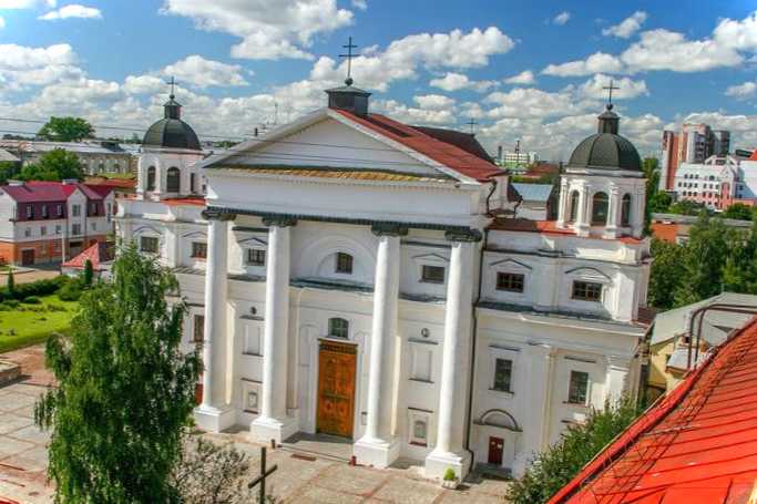 Будівництво велося у першій половині XVIII. Належить до зразків барокового стилю. Одна з особливостей - розпис склепінчастої стелі сюжетами з Біблії. Церкву, яка раніше стояла на цьому місці, була названа на честь Успіння Пресвятої Діви Марії. У середині минулого століття собор закрили, а приміщення пристосували до архіву. У 90-х повернуто єпархії. З того ж періоду приймає фестиваль духовної музики "Магутни Божа".