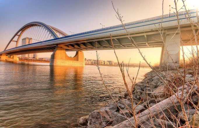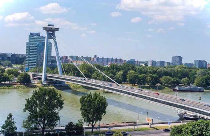 Міст через Дунай, що з'єднує спальні райони та історичну частину Братислави, відкритий у 1972 році. У довжину конструкція досягає 430,8 метра, опори встановлені лише на берегах, над водою прокладено підвісну частину. Міст названо на честь Словацького національного повстання 1944 року. На вершині опори знаходиться ресторан, з'єднаний з оглядовим майданчиком, який є одним із головних сучасних пам'яток Братислави.