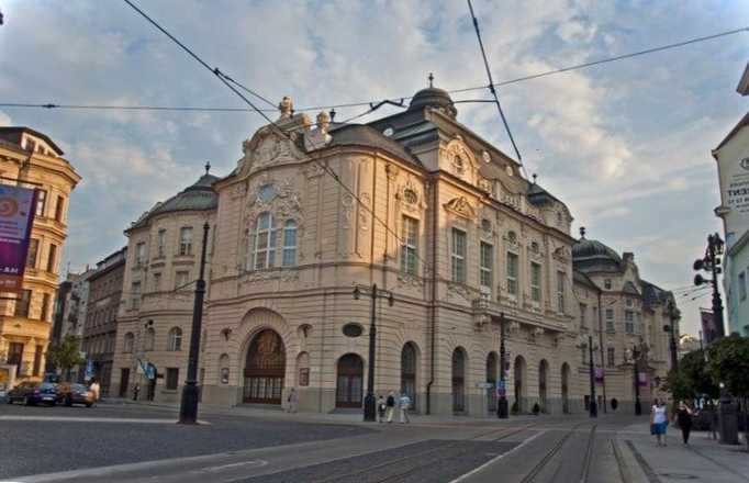 Словацький театр засновано наприкінці ХІХ століття. Будівлю було зведено за проектом австрійських архітекторів Х. Хельнера та Ф. Фельнера. Інтер'єр прикрашають фрески роботи. Спаньіка, а також картини Л. Люттгендоа-Лейнбург. Спочатку всі постановки давалися чеською мовою, але поступово його витіснив словацький. Біля головного входу встановлено скульптурну групу фонтану "Ганімед", створену В. Тілгнером.