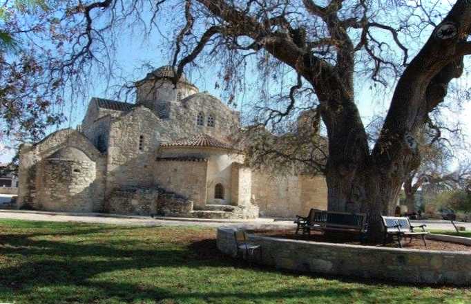 Візантійська церква XI століття, побудована на руїнах храму ранньохристиянської доби, частково зруйнованої під час арабської навали. Дивним чином збереглися фрески VI століття, які дійшли до наших днів завдяки шару штукатурки, що покривав їх. Унікальні зображення були виявлені під час реставрації у 1952 році. Поруч із церквою росте дуже древнє дерево, яке охороняється державою як пам'ятка природи.