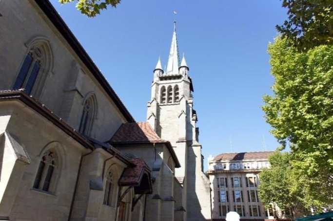 Храм на площі Сан-Франсуа, зведений у XIII столітті у готичній манері. У XV столітті до церкви було прибудовано 56-метрову дзвіницю. Раніше тут розташовувався монастир Ордену францисканців, але поступово він занепав і занепав. Його остаточно знесли на початку XX ст. Після перемоги Реформації з церкви було прибрано зайві прикраси, внаслідок чого сучасний інтер'єр має досить скромний вигляд.