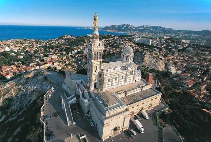 Мальовничий собор, збудований у період найвищої економічної могутності Марселя – у другій половині XIX століття. Храм зводився у розкішній візантійській манері з круглими куполами та витонченими балюстрадами. При будівництві використовувалась велика різноманітність матеріалів – від італійського мармуру до африканського оніксу. Інтер'єр собору щедро прикрашений мозаїкою, фресками та декоративними елементами із бронзи.