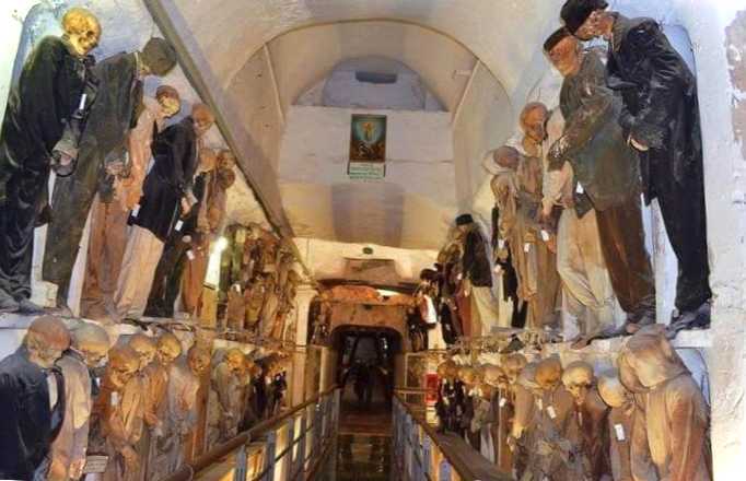 Підземні приміщення, розташовані в підвалах монастиря капуцинів, де поховано понад 8 тисяч осіб: ченці, вельможі, відомі та шановані городяни, митці та інші важливі для Сицилії люди. Цей некрополь досить незвичайний, тому що мертві тіла виставлені напоказ, а не спочивають у закритих склепах. Температура катакомб перешкоджає розкладанню, тому тіла перебувають у "законсервованому" стані.