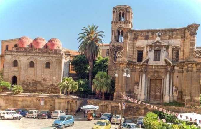 Церква Сан-Катальдо – унікальна пам'ятка арабо-норманської архітектури XII століття. Зовні вона чимось нагадує мечеть із високим мінаретом. Зараз храмом володіють брати чернечого ордена Святого Гробу Господнього Єрусалимського. Поруч розташований храм Марторана, також зведений у XII столітті. Візантійська мозаїка, що прикрашає інтер'єр Марторани, є найдавнішою на острові Сицилія. Обидві церкви внесено до списку Світової спадщини ЮНЕСКО.