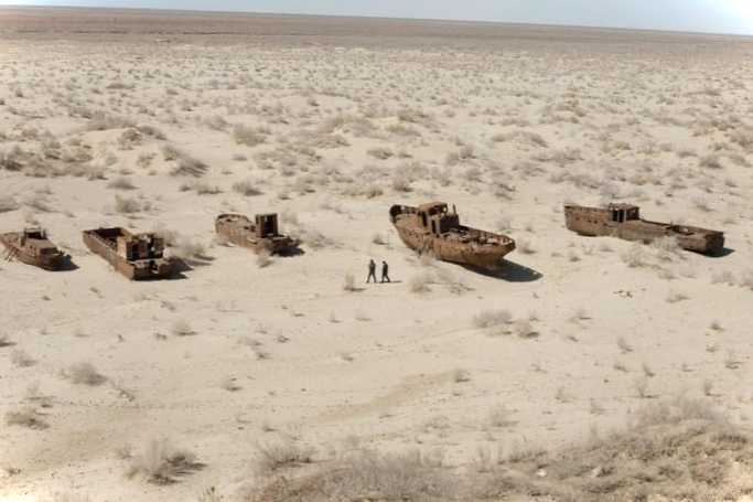 Це вмираюче море на кордоні Узбекистану та Казахстану. Колись воно мало величезні природні запаси і було дуже привабливим місцем для життя. Через забір води з річок, які були основним джерелом харчування для озера, воно почало висихати. Сьогодні воно розділене на дві частини: Південне (Велике) та Північне (Мало). Колись Аральське море було четвертим за величиною озером у світі.