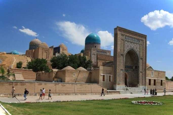 Це комплекс із 14 мавзолеїв, у якому похована самаркандська еліта. Він створювався протягом 9 століть, постійно добудовуючись. Ансамбль також називають вулицею-цвинтарем. Блакитні бані мечетей і мавзолеїв, що тягнуться один за одним, зверху нагадують дороге намисто. Остання споруда комплексу – це вхід у склеп. Щоб побачити мавзолеї, потрібно піднятися на 36 сходинок.