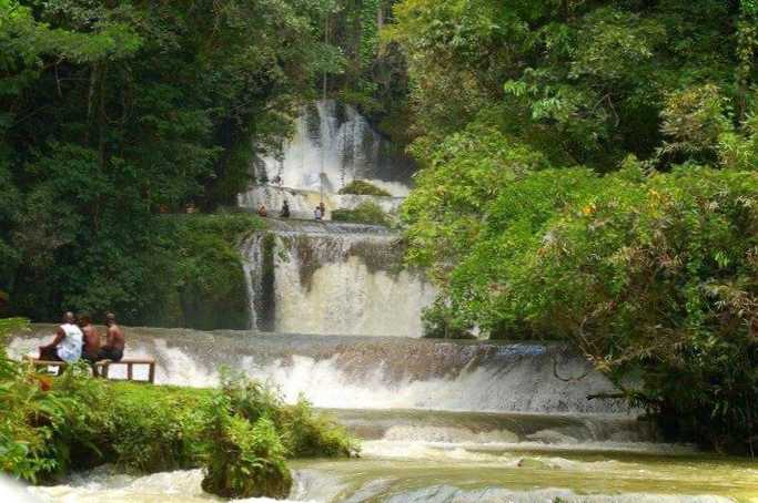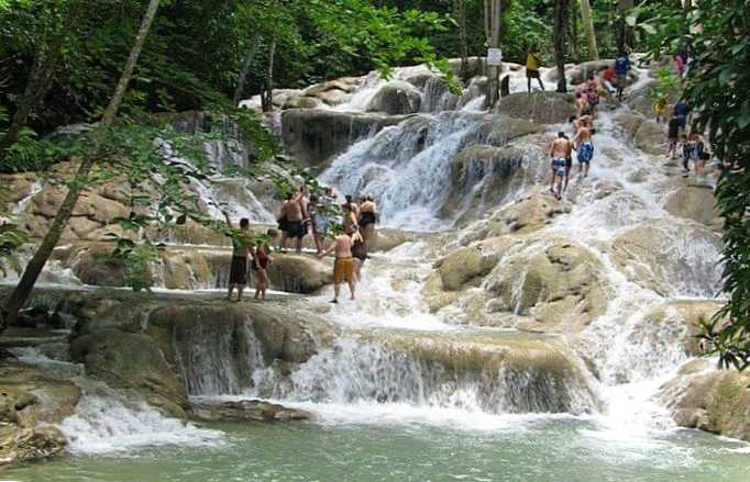 Ці водоспади – одна з найпопулярніших пам'яток Ямайки. Вони розташовані в красивому тропічному лісі, який оголошений природним парком біля міста Очо-Ріос. Сумарна висота водоспадів – 180 метрів. Вони унікальні тим, що стікають прямокутними і круглими виступами. По них просто піднятися нагору, ніж усі відвідувачі і займаються. Вода у водоспаді прохолодна та дуже приємна.