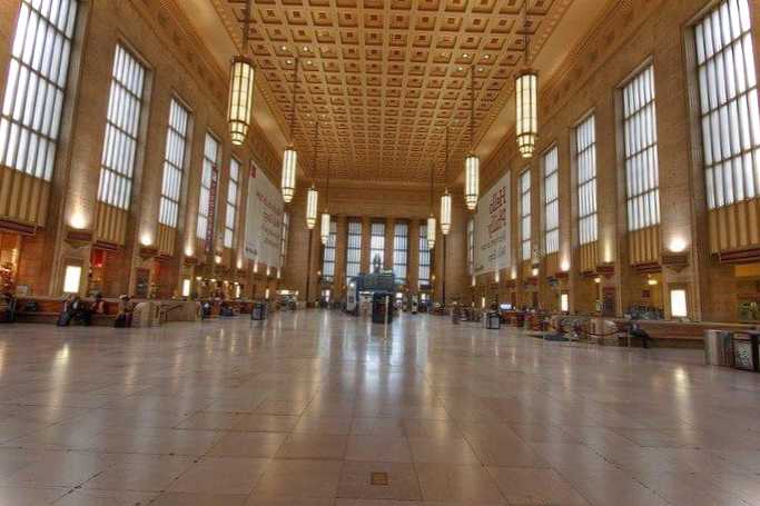Найбільша та завантажена станція Пенсільванії, яка щодня приймає десятки поїздів з різних міст США. Архітектура будівлі має деякі риси класичного стилю, але загалом споруда виглядає грандіозно та досить лаконічно. Вокзал було зведено у 1930-х роках. Він став останньою залізничною станцією, яка проектувалася в такій монументальній манері.