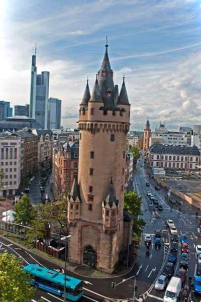Середньовічне укріплення збереглося з 15 століття. Вежа Ешенхайма була частиною потужної оборонної системи Франкфурта, що складається з 60 веж і товстих стін. Це конструкція нео -готичного стилю зі стінами передач та центральним шпилем. На сьогоднішній день у вежі розташований обраний ресторан, а кімната безпеки пристосована для міні-готелю.