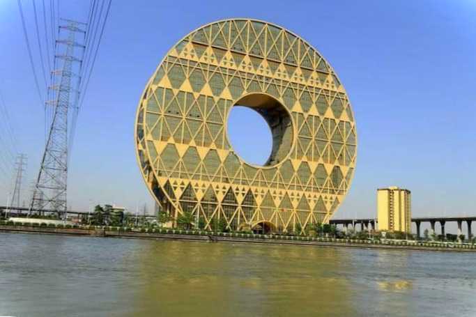 Найвища з круглих будівель світу, збудована у 2013 році. Воно на вигляд схоже на колесо. Висота – 138 метрів, а в центрі порожнеча. Відбиваючись у воді, будівля набуває "продовження" і стає схожою на цифру 8, що в китайських забобонах є символом щастя. Архітектор - Джузеппе ді Паскуалі. Хоча буквальний переклад назви - "Гуанчжоуське коло", у народі його називають "золотий пончик".
