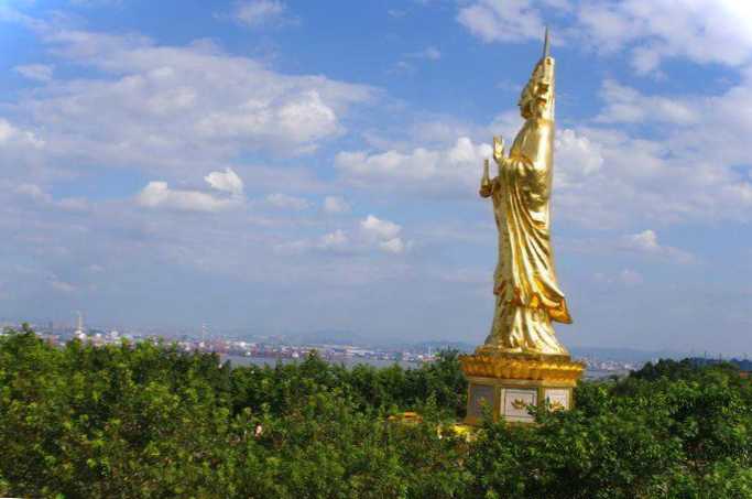 Одна з найновіших і найпопулярніших пам'яток Лотосових гір. Поруч модно знайти залишки міста та пагоду. Статуя була встановлена у 90-х роках XX століття. Її вага становить понад 100 тонн, а висота – близько 40 метрів. З вершини гори Будда дивиться у бік моря. На світлі статуя переливається особливим чином. Причина криється в 10 кг золота, якими покрита бронзова основа.