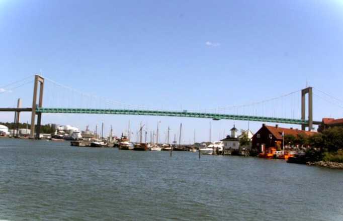 З'єднує береги річки Гета-Ельв. Підвісну конструкцію збудували у 60-х роках минулого століття. Протяжність – 933 метрів, висота над водою – 45 метрів. Центральна частина пофарбована у зелений колір. Це зробили на честь чемпіонату світу з легкої атлетики, який проходив у місті 1995 року. Міст могли назвати "Вест Брідж" на англійський манер для зручності вимови, але залишили шведський варіант на вимогу громадськості.