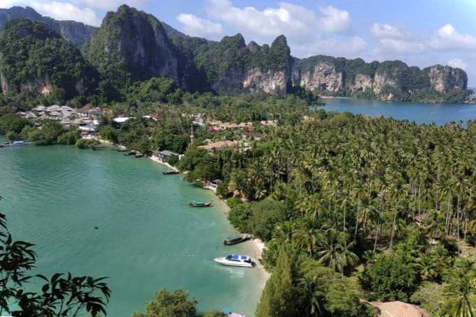 Для бажаючих побачити півострів зверхньо є два оглядові майданчики. Одна з них, між пляжами Прананг та Західний Рейлі, не настільки популярна як та, що розташована між Східним Рейлі та Прананг, на 100-метровій вершині скелі. Шлях на неї не з легких, на деяких ділянках він йде по камінню вертикально нагору. До того ж під ногами – червона глина, в якій можна забруднитись. Але розкішна панорама нагорі окупить сповна всі витрачені зусилля.