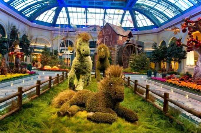 Ботанічний сад та консерваторія входять до комплексу готелю-казино "Белладжіо". Понад 10 тисяч рослин саду розміщені на великій території, з квітів зроблено різні фігури тварин, що надає місцю казкового вигляду. Для догляду за такими значними угіддями існує штат із 100 садівників, які щодня поливають, підстригають і створюють нові квіткові композиції на радість відвідувачам.