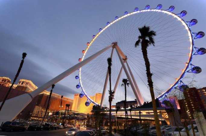 Колесо огляду Лас-Вегаса вважається одним з найбільших у світі. Його висота – близько 170 метрів. Грандіозний атракціон складається з 28 просторих кабінок, у кожну з яких вміщується рекордна кількість відвідувачів (кілька десятків людей). Колесо здійснює повний оборот за 30 хвилин. За цей час усі охочі встигають повністю насолодитися чарівним видом міста з висоти пташиного польоту.